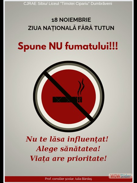 18 NOIEMBRIE- ZIUA NAȚIONALĂ FĂRĂ TUTUN,