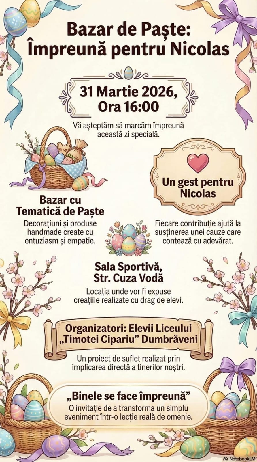 Miercuri, 17 decembrie, 2025; ora 16:00, Casa de Cultură Dumbrăveni - elevii din ciclul primar și gimnazial.